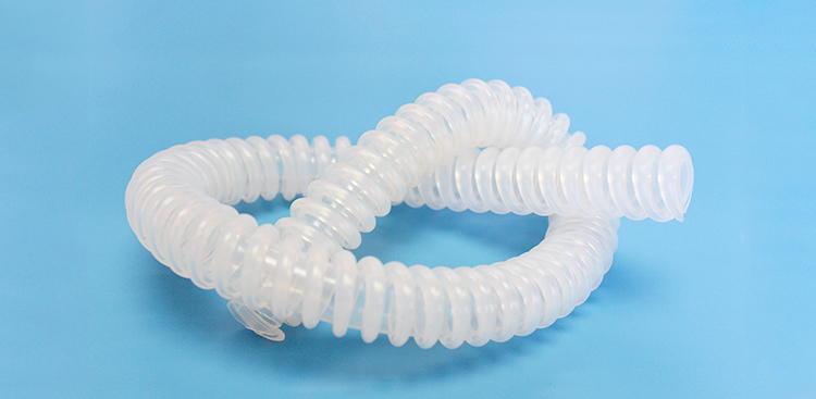 医用呼吸机硅胶软管 (主要用于医用呼吸机、麻醉机设备) 可任意弯折且通气流畅,对折后不变形,可高温,高压消毒。 通过生物相容性细胞毒性测试,符合ISO10993标准。
