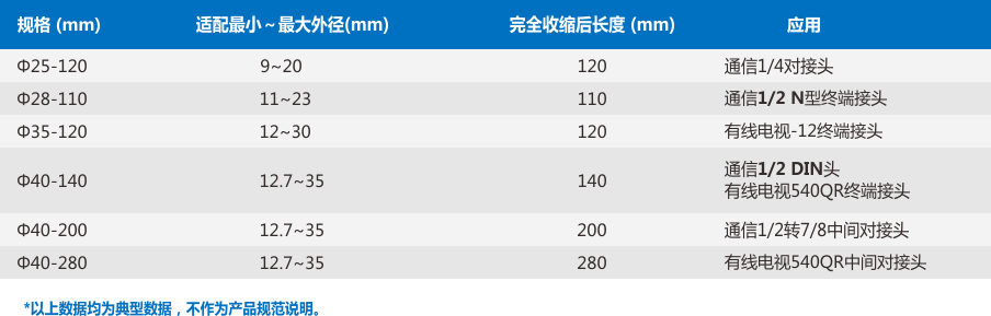 ● 广泛应用于通讯基站同轴电缆、N型接头及1/2跳线、Din头及1/2跳线接头的防水密封